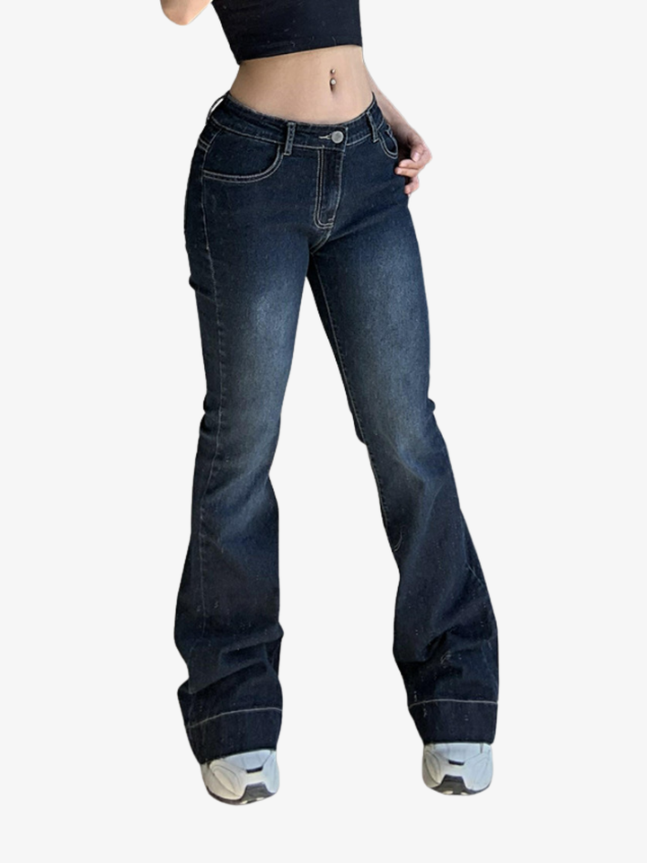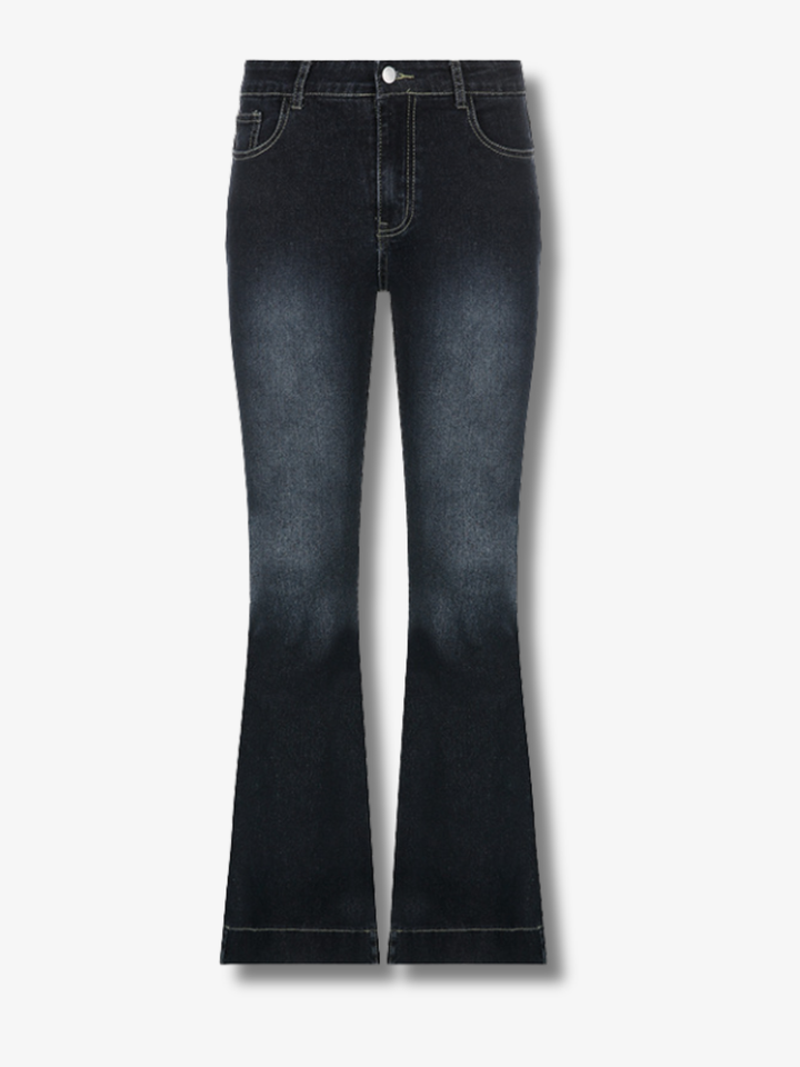 Details: Y2K meets clean streetwear. These washed flared jeans feature subtle whiskering, contrast stitching, and clean hems for a long-leg silhouette.