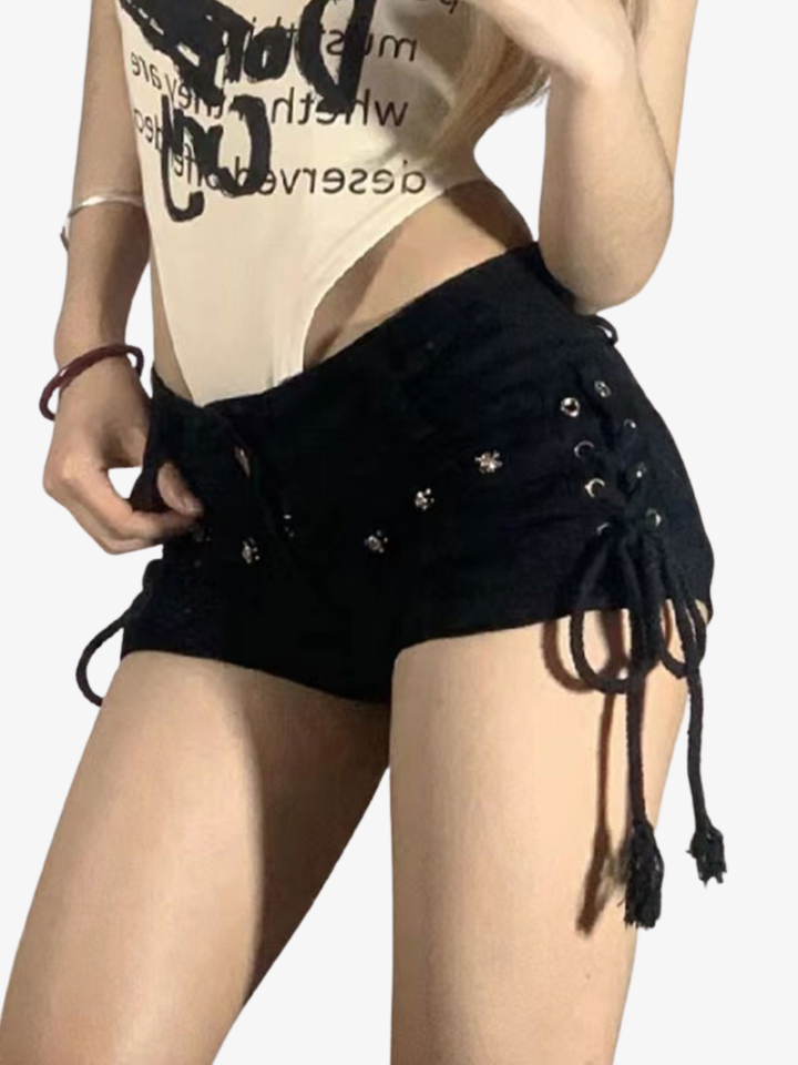 Details: Features side drawstrings and star-studded embellishments for a bold Y2K vibe.