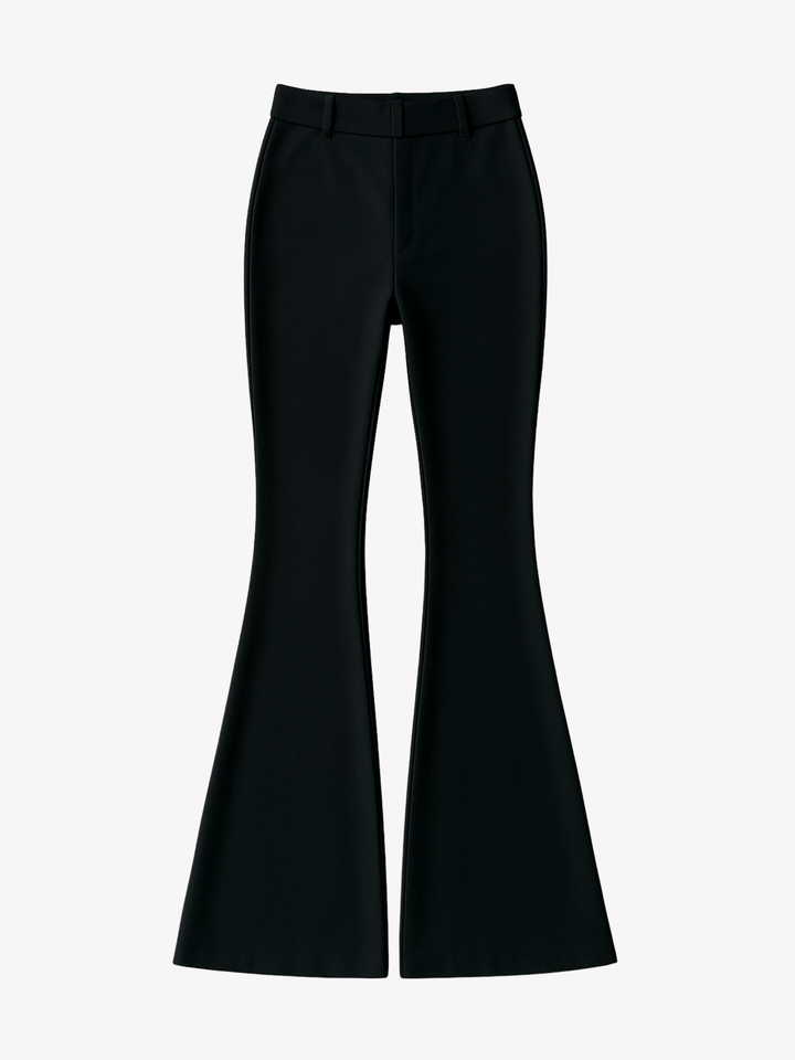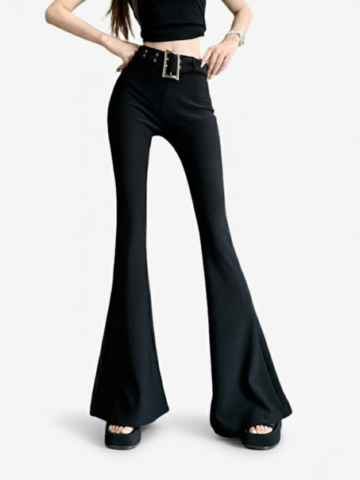 High-waisted with figure-hugging hips and exaggerated bell bottom flare