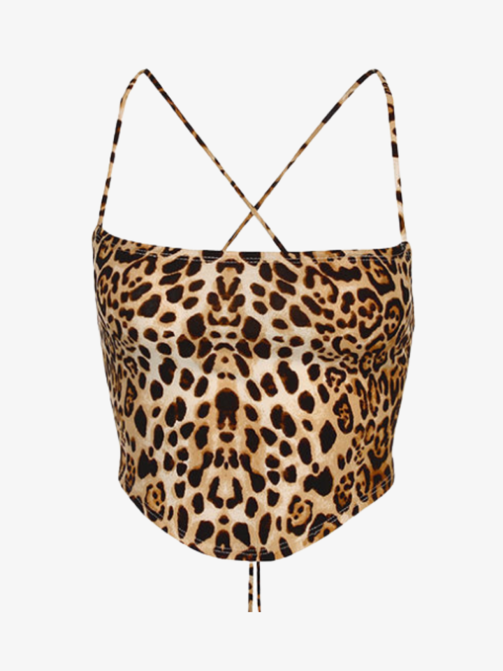 Details: Fierce leopard print on a smooth satin fabric makes this top the ultimate Y2K statement piece.